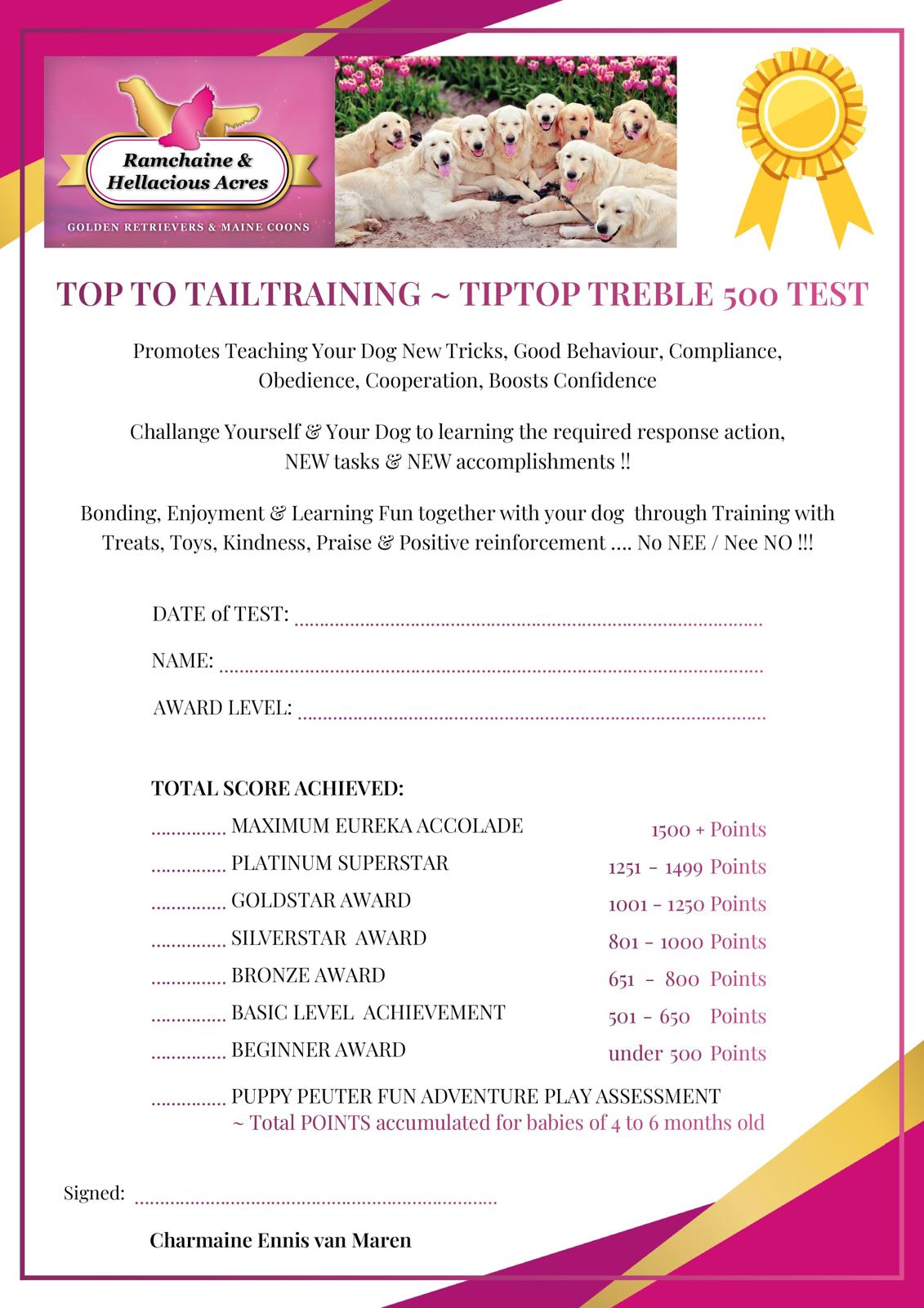You can DO The TIPTOP TREBLE 500 TEST with Your Pup/Dog for the first & second time on a private examination appointment.